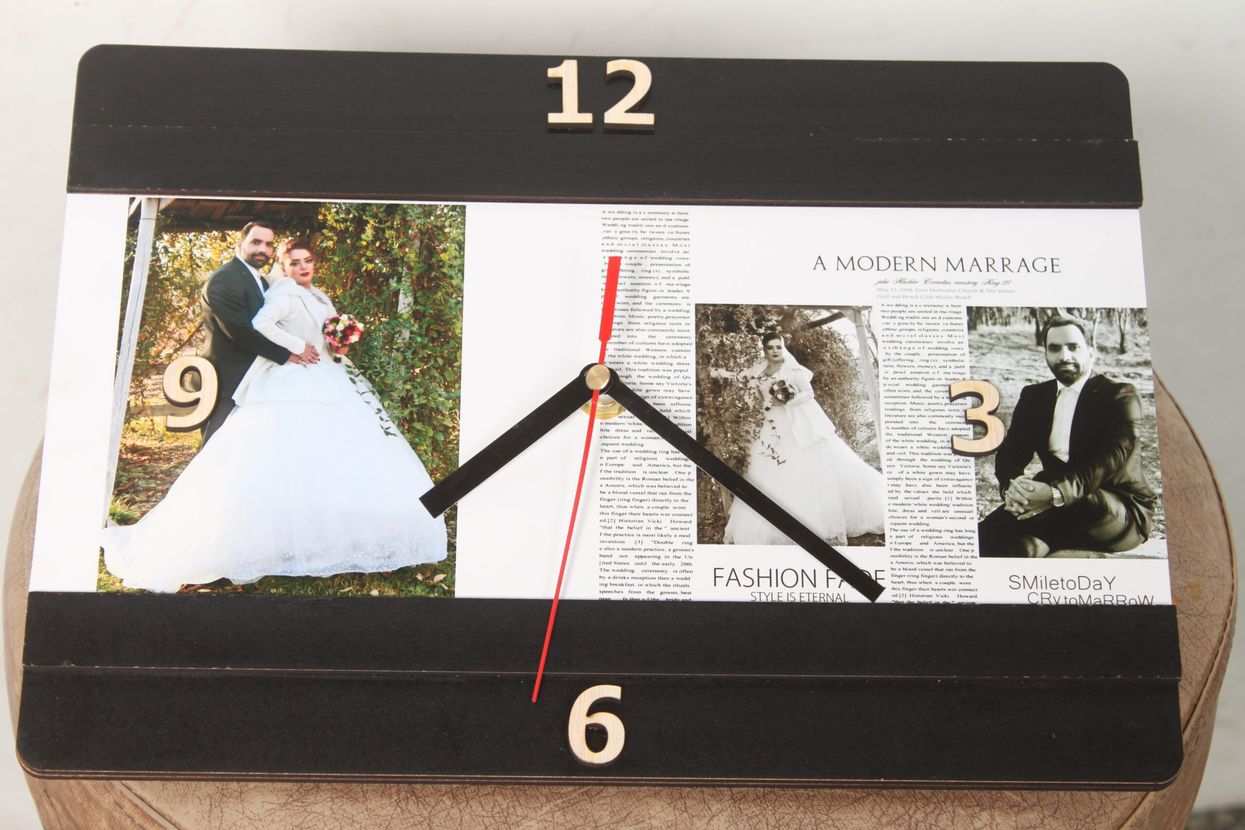 ساعت دیواری دکوراتیو با قابلیت چاپ عکس دلخواه (18×30 سانتیمتر). موتور کوارتز با کیفیت بالا و طراحی مدرن، ایدهآل برای نمایش خاطرات و زیباسازی دکوراسیون منزل.